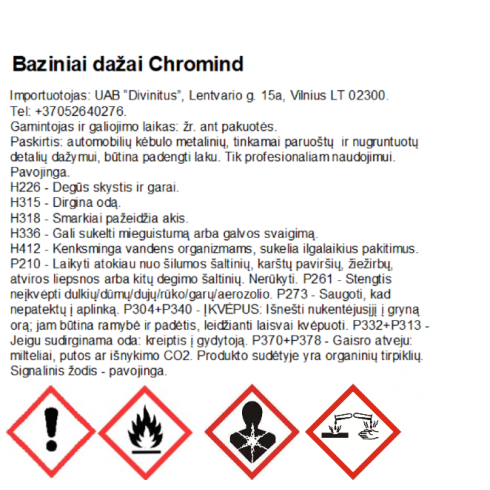 Dažai bus paruošti tinkamo klampumo pagal technologiją, todėl skiediklio nebepilti! Prieš naudodami gerai išsimaišykite ir pasitikrinkite spalvą nusidažydami kontrolinį pavyzdį.
